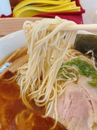 チャーシューもこれまた美味しいです!しっかりお肉って感じがするのがいいですね~!そして麺をいただきます!昔ながらの麺ですね!こういう麺が一番落ち着きます!大盛にして正解です!美味しいのでつるつるいっちゃいます!