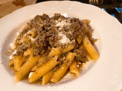 続いていただいたのは鹿ボロネーゼのペンネです。私なぜかわかんないんですが、小さいころからペンネが大好物でした。マカロニとかも。ペーストが好きなんでしょうね~!