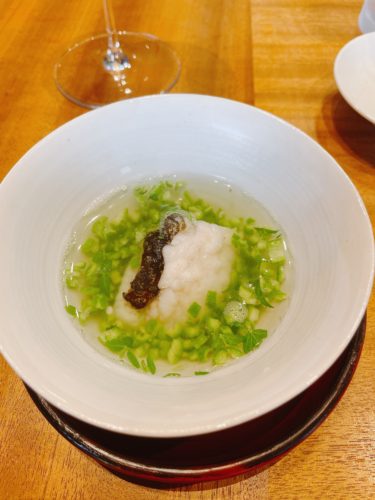 続いてのお料理は唐津のオコゼのオクラスープ!