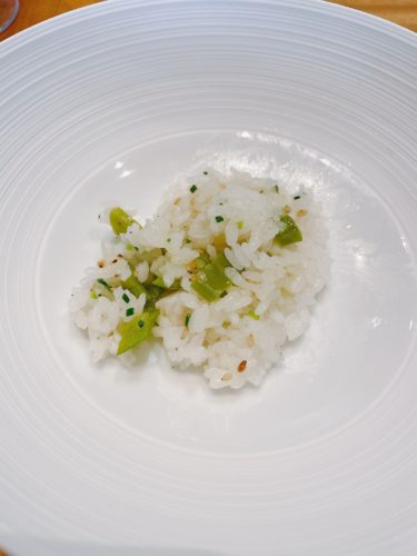 さて、少し時間が空いてしまいましたが広島県は廿日市のAKAIさんの最終回です。広島県は安芸高田の鹿のハンバーグの驚きの余韻が続いている中、続いて登場したのが島根県ののどぐろとトマトとレモンのお粥が登場しました!のどぐろにこの色を合わせていらっしゃることに驚きを覚えながらいただいてみると、う、う、うまい~!なんて美味しいの!本当にすごいの一言です!トマトとレモンの酸味とのどぐろの脂がめちゃくちゃマッチしてます!