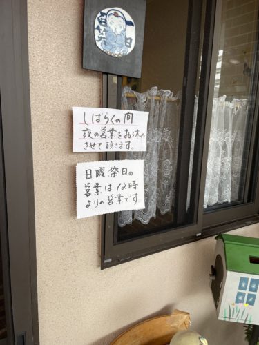 この日もいくちゃんのお好み焼きをいただきにお店に伺いました~!お店の前には夜の営業をしばらくお休みされることが書かれていました。また再開されることを願っています。