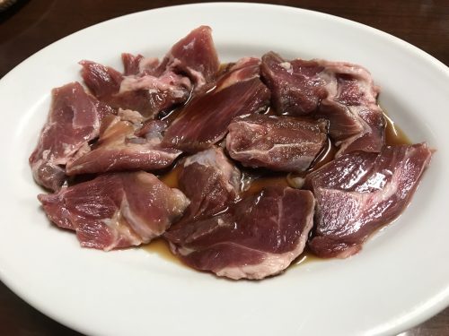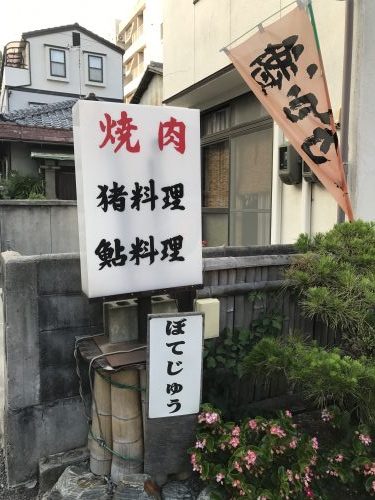 さて、先日久々にこちらのお店にお邪魔してきました~!お店の名前はぼてじゅうさんです。ご夫婦で切り盛りされている焼肉とイノシシ料理のお店です。大将自ら猟にいかれています。しかも一人で!猟犬を育てていらっしゃって猟犬といかれるんですよ~!毎回いろいろな話を聞かせてもらうんですが、とってもおもしろい!猟って創造がつかないですもんね~。