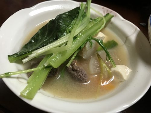 スープがとってもおいしいんです!もちろんたっぷりの猪肉がはいっています!お自分の農場でとれた野菜もしっかり入っていました~!