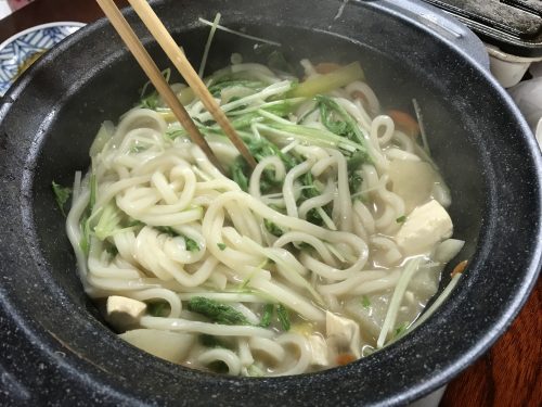 最後はもちろん、うどんを投入!これが超おいしい~!