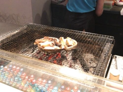 この日はちょっと特別にあわびをいただきました!鉄板焼きしんごさんがもってきてくださいました~!生きてるあわびなのでこれがめちゃくちゃおいしい~!最高でした!普段はありませんので。