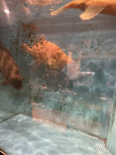 ふと生け簀をみてみると、ウマヅラの横に大きく太ったマルハゲが!