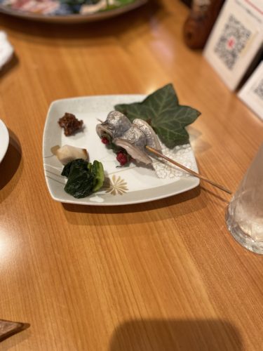 一政さんのおすすめ太刀魚の梅肉入り串焼きをお願いしました!