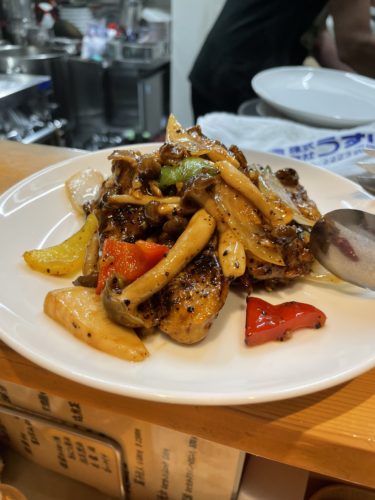 コクのあるいい香りが店内を包み込んできました。何が登場するのかな~!なんと大きな牡蠣が入ったトウチ炒めが登場しました!野菜もたっぷり入っています!牡蠣と一緒にいただいてみると、めっちゃ美味しい~!ぷりっぷりの牡蠣がたっぷり入っています!最後の一個は喧嘩するんじゃないかと心配するくらい美味!