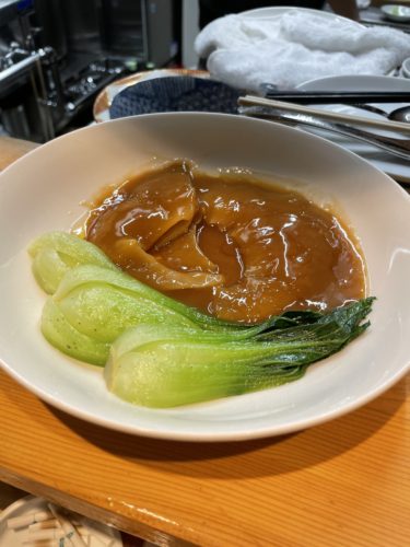 いや~おいしかった~と油断していたら、、、なんとフカヒレが!しかもけっこう大きなフカヒレが!これは興奮しちゃいますよね~!なかなかフカヒレたべよ~って気軽に言えませんからね!まずはがぶりとたべてみました!あ~懐かしい~!久しく食べていなかったので感動もひとしおです!あっという間に食べちゃいました!