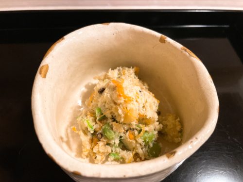 苧実(おのみ)という実やあさり、松の実、たけのこ、にんじん、うすい豆といろいろ入っていました!