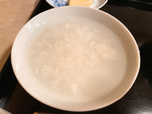 この鯛の煮つけが登場するとそろそろごはんが登場するのかな~と気分があがってきます!こちらも一度に食べずにごはんと一緒に食べる分も残しておきます。でもあまりの美味しさに残しておくのが非常に難しいのも現実です。笑