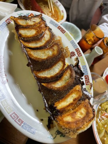 ということで、さっそくいろいろいただきます。まずは餃子から!ニラがたっぷり入ったとっても美味しい餃子!最高!