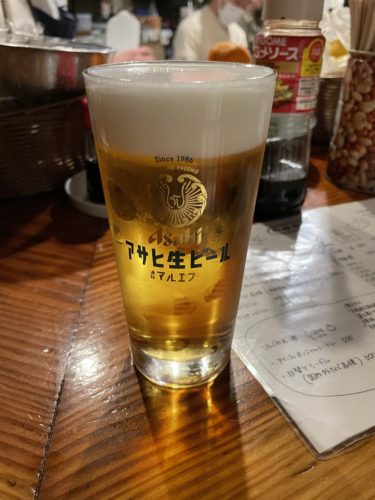 まずは生ビールから!久々の生ビールにこちらが緊張するくらいです!お願いしたらアサヒのマルエフでした!泡もクリーミーでとっても美味しい~!最高です!