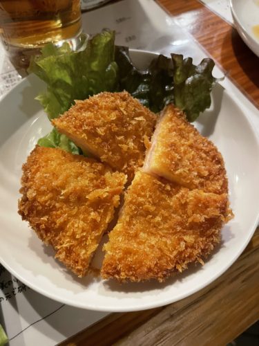 やはりアイニティさんと言えば、ハムカツでしょう!4人で伺ったので、4分割してくださいました~!ありがたい~!このハムカツがこれまた食感もすばらしくて美味しい~!