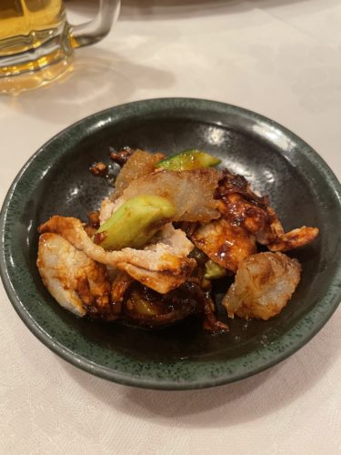 蒸し豚にはクラゲもたっぷり入っていました!ソースとの相性が抜群ですね!
