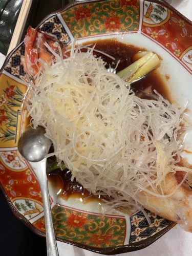 まじっすか~!マハタを一尾まるごとですか!なんてことですか!食べたそうな目をしていると少し分けてくださいました。いただいてみると、これがまた美味しい~!ネギと一緒に食べるとこれまた美味しい~!蟹が食べれない方はご参考に!笑