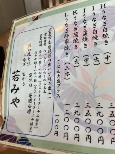 まだまだしっかりしたウナギがいただけますよ~!広島でうなぎ食べたいな~というときは若みやさんにぜひ~!