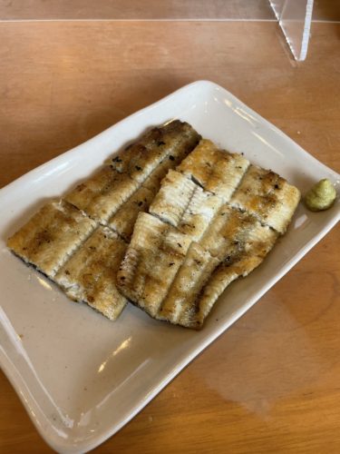 その前にせっかくなので白焼きをいただいてみます。こちらも大がなくて中でしたが十分の大きさですよ~!カリッと焼きあがっているので香ばしくて美味しい~!厚みも十分ありました!真冬だともっと厚みがでてくるんだと思いますが満足です!