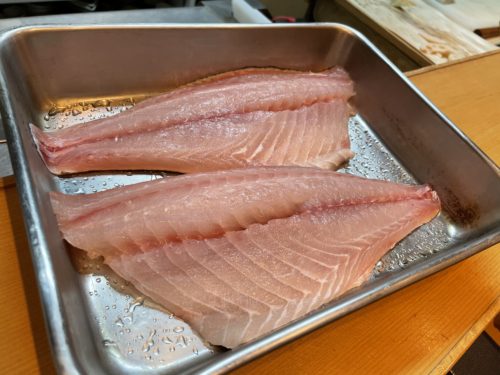「今日は静岡県の瀬付きのイサキが入っています。」