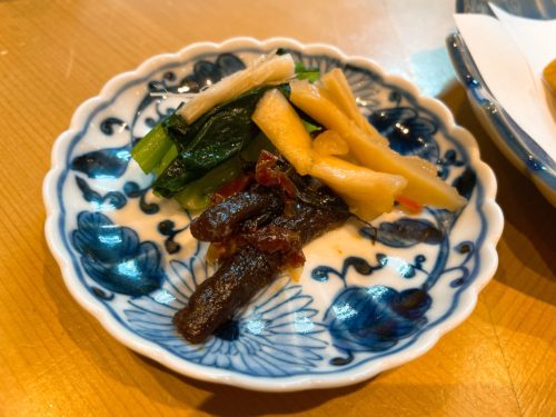 さて、今回はかなり前に伺っていた日本料理尾前さんです。この日はうなぎを食べようの会でした。まずは生ビールで乾杯!最初のお料理は黄ニラと金時草とはなびらだけのおひたしを!とっても美味しいですね~!ほっとします。