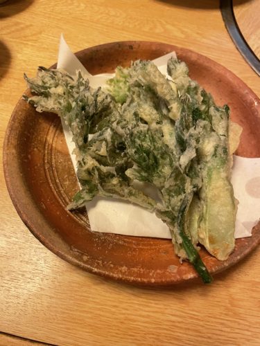 山菜の天ぷらがありました~!いままで小波さんで山菜の天ぷらたべたことあったっけ?お魚料理がめちゃくちゃ美味しい小波さんなのですが、実は天ぷらやフライ物がとってもおいしいんですよ~!登場した山菜もこれまた美味しそう~!山菜っていつが時期なんですかね?年がら年中たべれるのかな?お塩でいただくとサクッとした食感が素晴らしい~!いい感じで揚がっています!