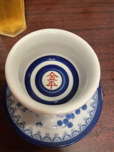結構大きめの金平さん専用猪口で登場します!こちらの日本酒がほんのり甘くて美味しい~!そして燗してあるのですがこれがめっちゃ飲みやすい温度!すごい温度管理です!