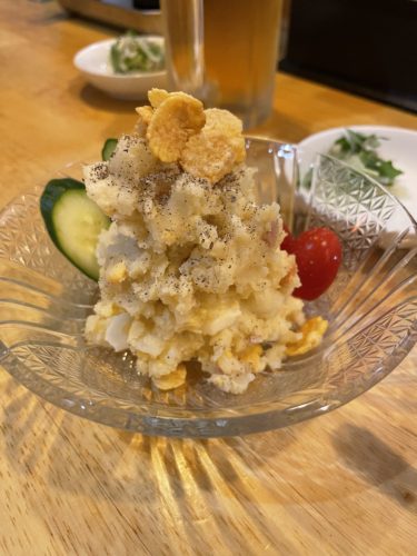 手作りポテトサラダもいただきますよ~!餃子を食べる前に美味しいつまみで生ビールをがっつりいただいちゃいます。笑
