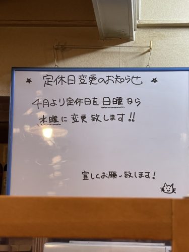 そうそう、定休日が変更になっています!日曜日に営業していただけると助かりますね~!