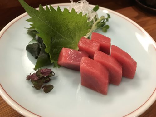 この日は特別にまぐろもお刺身でいただきました!とくみさんのまぐろはそんじょそこらでは手に入らないですから、ぜひ食べていただきたいです。仕入れも特別ですよ!