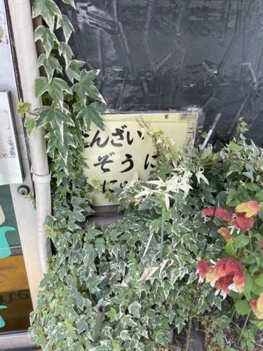外の看板も6年前はしっかり視認できていたのですが、今では植物が生い茂ってきて少し見えにくくなっていました。ぜんざい、ぞうに、にゅうめんと書かれています。