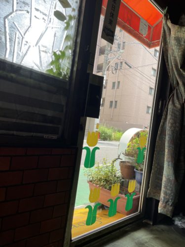 コーヒーを飲む前にふと入口のドアのチューリップの絵が目に留まりました。