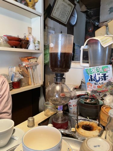 コーヒーはなんとサイフォンで入れてくださいます!しかもアルコールランプで温めていらっしゃいました。なんて懐かしいんだ~!