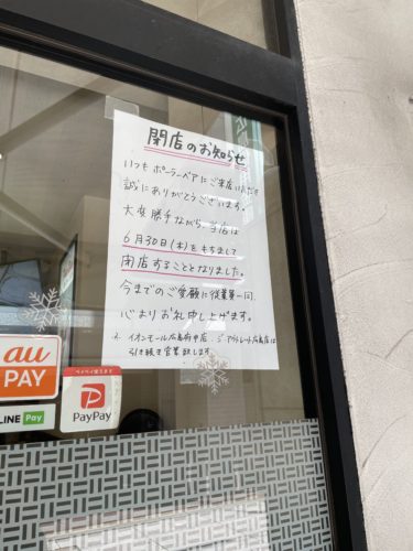 ふと外に貼られた紙をみてみると、ええええ?!閉店?なんとポーラーベアさん6月30日で閉店されるんだそうです!うそ~!ほんとに~!ショックです、、、涙。