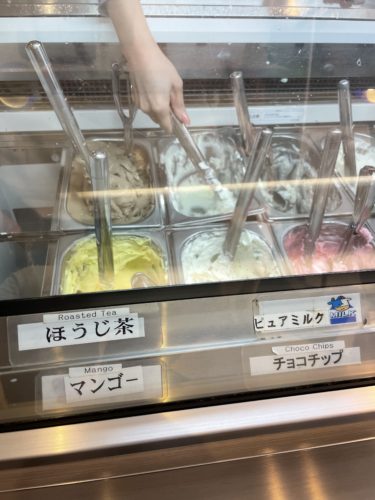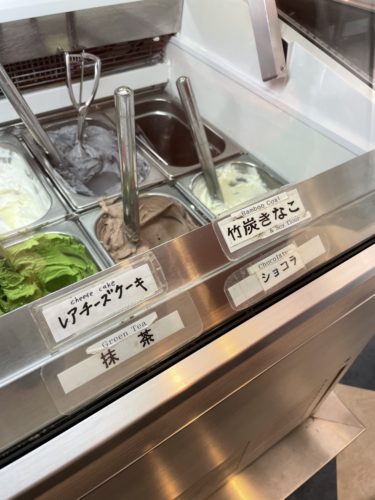 じゃあどうしようかな~、、、おおお!竹炭きなこがありました!これもとっても美味しいんですよね~!あとは定番のピュアミルクをお願いしました!