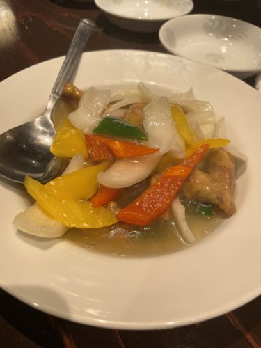 ますは酢豚をお願いしました!慣れ親しんでいるのは色が濃い酢豚ですが、きむらさんは透き通った色をしています。でもちゃんとお味は酢豚!豚にもとっても美味しい~!野菜もシャキッと!最高!