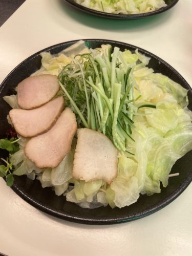 続いて麺と野菜が登場しました!この日は麺は中(1.5玉)でキャベツが大盛です!中でこのボリュームですからね~!