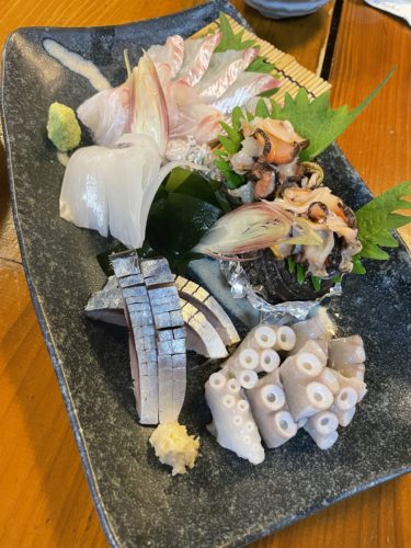 お刺身は盛り合わせにしてもらいました!天然鯛、手長たこ、水いか、さざえ、しめ鯖!手長たこ久々に頂きましたが、甘みがあってとっても美味しい~!天然鯛も最高でした!