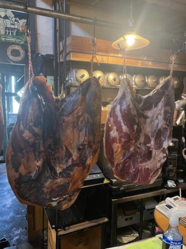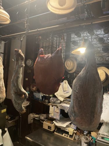 どれも美味しそう!そして視線を上に向けると生ハムたちが~!