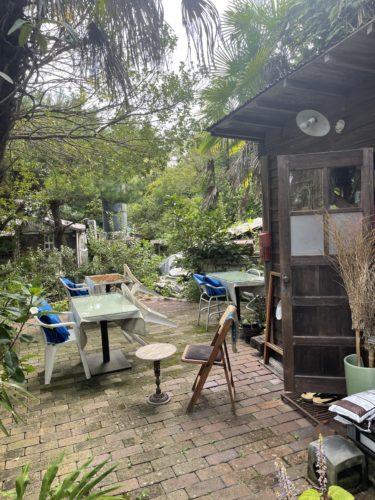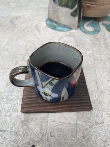 お店の外にある庭のようなところでマスターが焙煎して豆を挽いて入れてくださったコーヒーを!