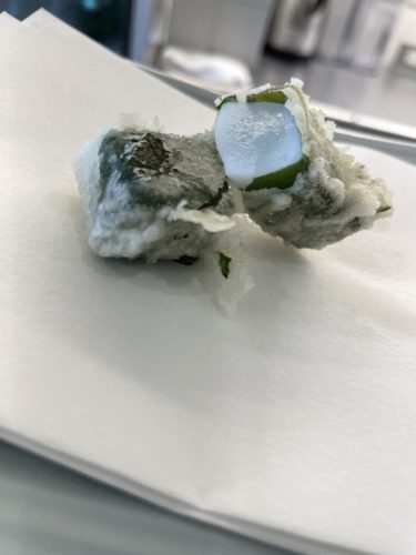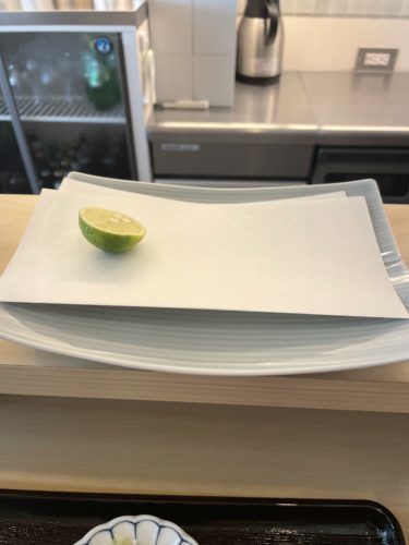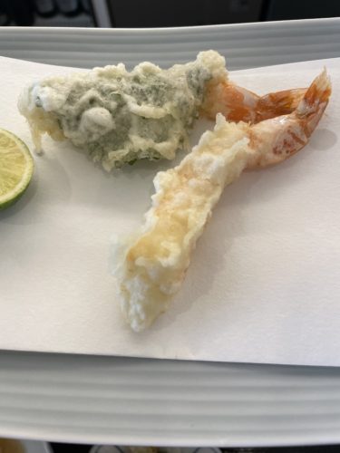最初は海老が登場しました!塩とカレー塩でいただいてみます。プリップリでとっても美味しい~!やっぱり天ぷらが揚げたてが最高ですね!カレー塩がさらに食欲を促進してくれます。