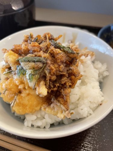 「最後はかき揚げですが、ごはんの上にのせましょうか?」