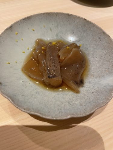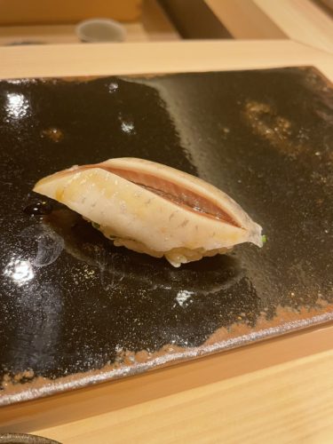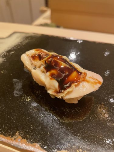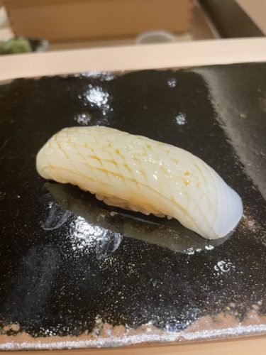 続いてアオリイカの握りが!アオリイカの握りってなかなかいただくことがないのでどんなかんじなんだろう、、、めっちゃ美味しい~!やっぱりイカの王様といわれる所以ですね!甘みが素晴らしい!