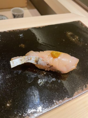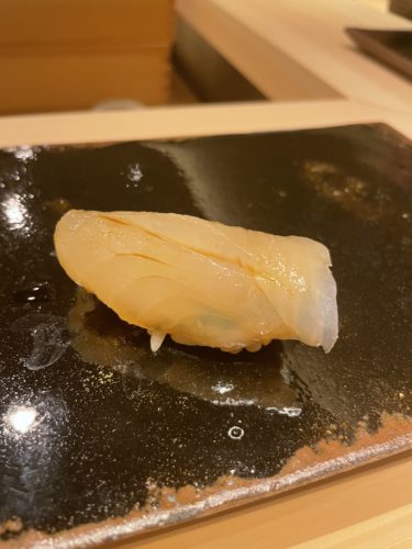 さて、昨日ご紹介しました今予約がなかなか取れない鮨松さんの続きです。いろいろな一品料理をいただいたあとについに握りが登場しました。まずは島根県からやってきたヒラメ!おいしそうでしょう!もうめっちゃめちゃ美味しいです!
