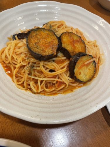 続いてパスタが登場!かなりボリュームがあります!ナスも大き目のがたっぷり!美味しそう!