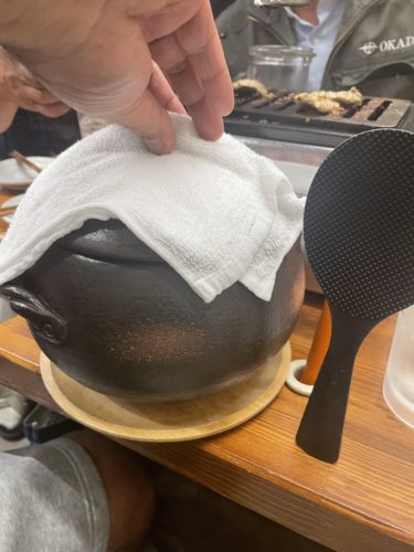 ごはんがいるということで土鍋ごはんを5号お願いしました!炊き立てのいい香りがします~!いただくとめちゃうま~!瞬殺!