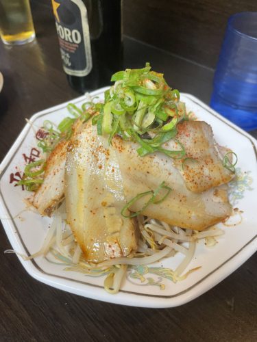 瓶ビールをお願いして最初はやっぱりもやしチャーシューをお願いしました!チャーシューともやしの相性ってなんでこんなにいいんだろう?信じられないくらい最高の相性ですね~!