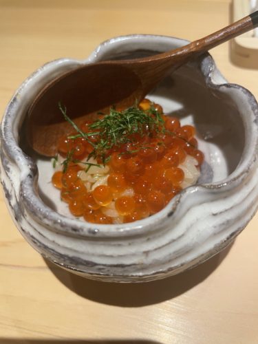続いていくらが登場しました。お鮨を頂く前にいろいろとこうして楽しませてくださるスタイルがやっぱり楽しいですね~!