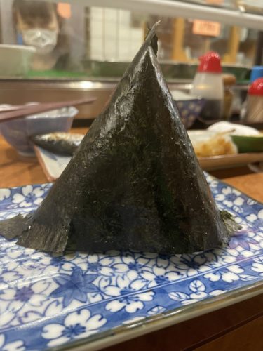 ではいつも通り〆をいただいて帰りましょう!さざんかさんといえばおむすびです!このおむすびはほんと半端なく美味しい!私はたいてい鮭です。鮭を骨ごと購入されて骨の間についている身をこそぎとってフレークにしておむすびに入れてくださいます。鮭から染み出てくるエキスがごはんに少しいきわたっているのがこれまた極上に旨い!