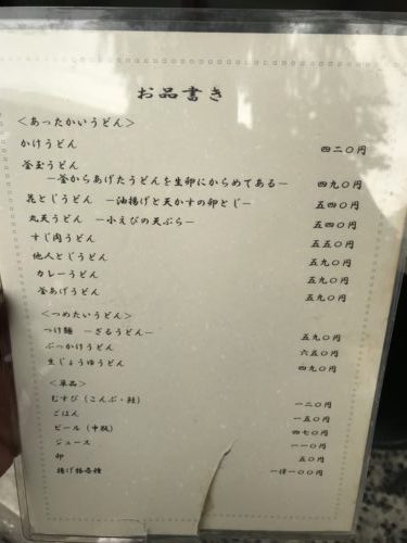 お店に到着するとすでに数人の方が外でお待ちでした!待っている間にメニューを見ながら何にしようかなと。この日は花とじうどんにしました!油揚げと天かすの卵とじですね!