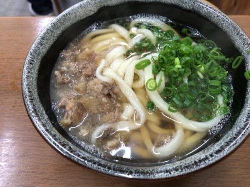 そこへうどんが登場しました!まずは友人のすじ肉うどん!おいしそう~!出汁のいい香りが半端ないです!